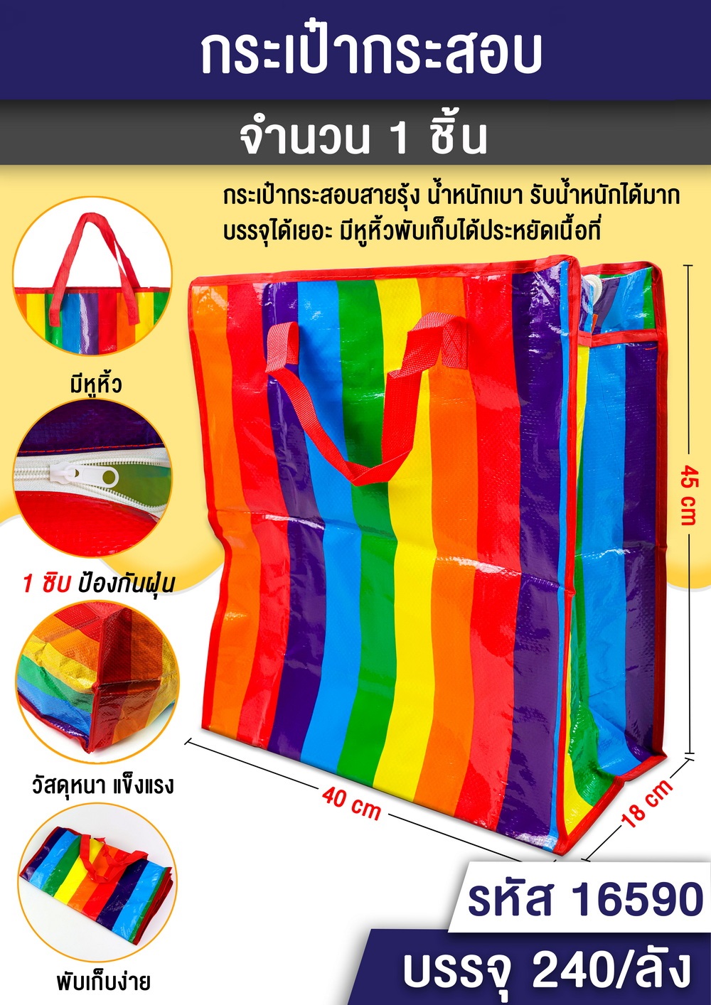 16590 กระเป๋าหูหิ้วลายสายรุ้ง 40x45x18 ซม.
